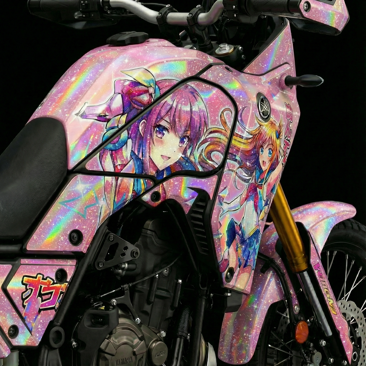 And for a guaranteed "wow" effect, we don’t stop there! Our motorcycle decal kits come in holographic, chrome, glitter, glossy, or matte finishes. Imagine your bike sparkling under the sun or boasting a bold and stylish look. Every detail counts to turn your bike into a true work of art.